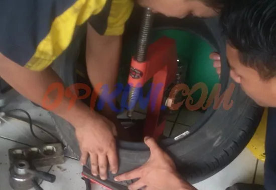 - Pertama-tama bongkar ban karena harus dipisahkan dari velgnya.