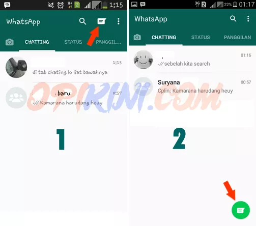 Jadi buat yang bingung dimana mencari menu untuk membuka kontak WhatsApp caranya adalah pilih tab Chatting dulu tap icon kontak seperti terlihat pada kedua gambar diatas yang diberi tanda panah merah.