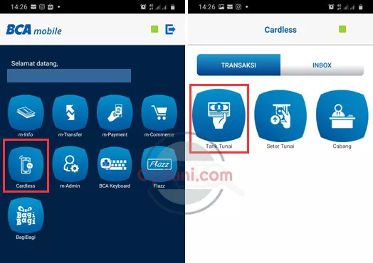 Sebelumnya pengambilan uang tanpa kartu bisa diakses dari menu Tarik Tunai di m banking BCA tapi kini sudah berubah menjadi Cardless atau sudah gabung dengan menu untuk tarik tunai tanpa kartu.