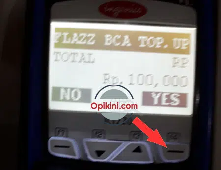 - Pastikan kartu FLAZZ terbaca di mesin EDC yang ditandai dengan munculnya tulisan “FLAZZ BCA TOP UP TOTAL RP…” kemudian pilih Yes.